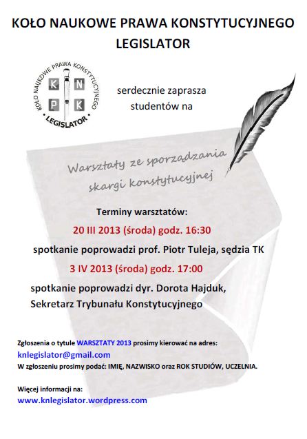 Warsztaty cały czas trwają – obecnie uczestnicy mają za zadanie sporządzić na tle przedstawionego stanu faktycznego skargę konstytucyjną lub opinię o niedopuszczalności sporządzenia skargi konstytucyjnej.